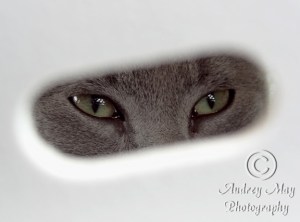 I recently photographed my new kitten while my mother and I took her for a little car ride.  We want her to get used to her carrier and not associate it with just going to the vet like my other cats do.  While my mother ran into the grocery store for a few things, I sat in the car with the kitten.  She kept peeking at me through the side of the carrier, so all I could see where here eyes.  It was so cute that I couldn’t help but take a few pictures.